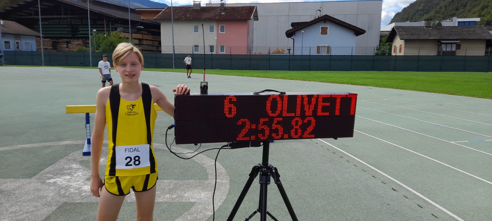 Unser Nachwuchsläufer Simon Olivetto verbesserte am 24.09.2022 beim Vergleichskampf Südtirol-Trentino seine persönliche Bestzeit im Bahnlauf über 1.000 Meter um mehr als 4 Sekunden von 2.57,84 Minuten auf 2.53,22 Minuten und erreichte dabei den 5. Rang der Kategorie U16 – „Cadetti“.
