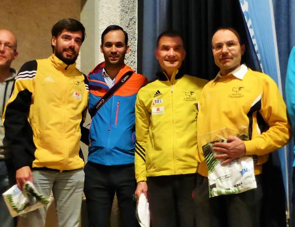 Markus Engl, Oswald Plangger, Martin Rossi und Felix Huber bei der Ehrung der treuen Top7-Läufer.