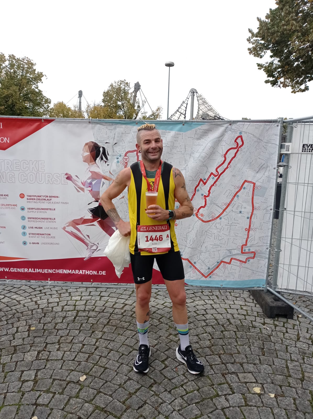 Unser Vizepräsident Alex Oprandi bestritt am 13. Oktober beim 41. München-Marathon sein Marathondebüt und konnte dabei mehr als überzeugen und schaffte gleich bei seiner Marathonpremiere eine Zeit von unter 3 Stunden. Mit einer Gesamtnettozeit von 2:57:51 Stunden und Gesamtplatz 131 (Platz 125 der Männer und 10. der Kat. M45) unterbot er souverän die bei vielen ambitionierten Hobbysportlern immer wieder angestrebte Zeit unter 3 Stunden. Die Marathonläufer*innen hatten widrige Bedingungen, denn es war kalt, windig und teils auch regnerisch. Mit einer Zeit von 1:29:23 Stunden auf der 1. Hälfte und mit 1:28:28 Stunden auf der 2 Hälfte gelang ihm ein sog. „Negativsplit“, d. h. die 2. Hälfte lief er schneller als die 1. Hälte. Herzliche Gratulation an Alex zu dieser echt sehr starken Marathonpremiere und herzlich Willkommen im Club der „unter 3 Stunden Läufer“.