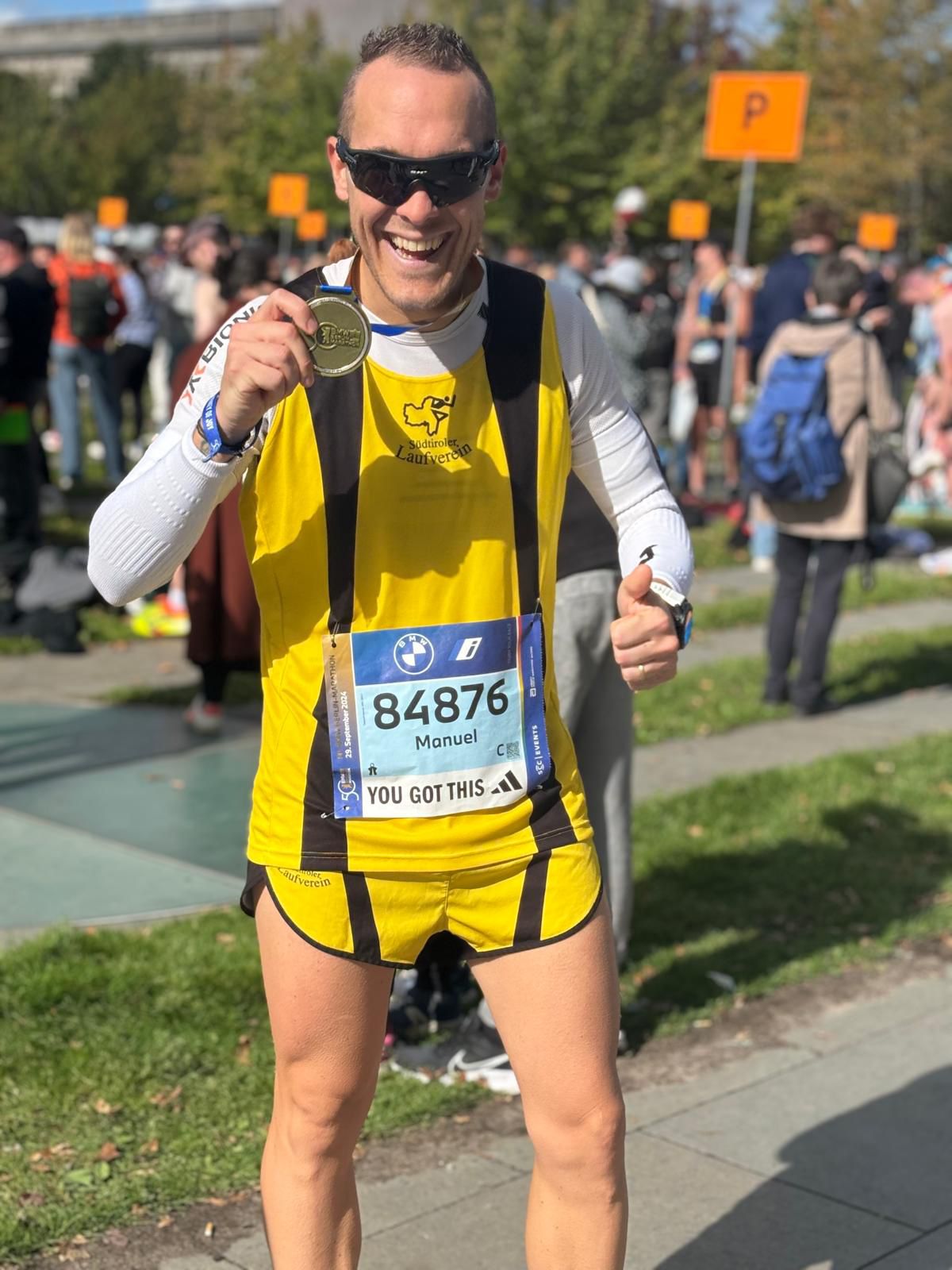 Unser Ausschussmitglied Manuel Todeschi nahm am Sonntag, den 29. September an der diesjährigen Jubiläumsausgabe, dem 50. Berlin-Marathon teil. Er lief bei optimalen Laufbedingungen eine neue persönliche Bestzeit von 2:57:34 Stunden und verbesserte seine persönliche Marathonbestzeit um ca. 5 Minuten (vorher 3:02 h). Manuel benötigte dabei 1:28.11 Stunden für die 1. Hälfte und 1:29.23 Stunden für die 2. Hälfte und erreichte damit sein lang ersehntes Ziel, einen Marathon unter 3 Stunden zu laufen. Er belegte im mehr als 58.000 Startern umfassenden Läuferfeld und 54.280 Finishern den insgesamt 3.618. Rang (3.363. Mann und Platz 754 in der Altersklasse M35). Herzliche Gratulation Manuel zu diesem tollen Erfolg und Willkommen im Club der sub 3 Stunden-Marathonläufer.