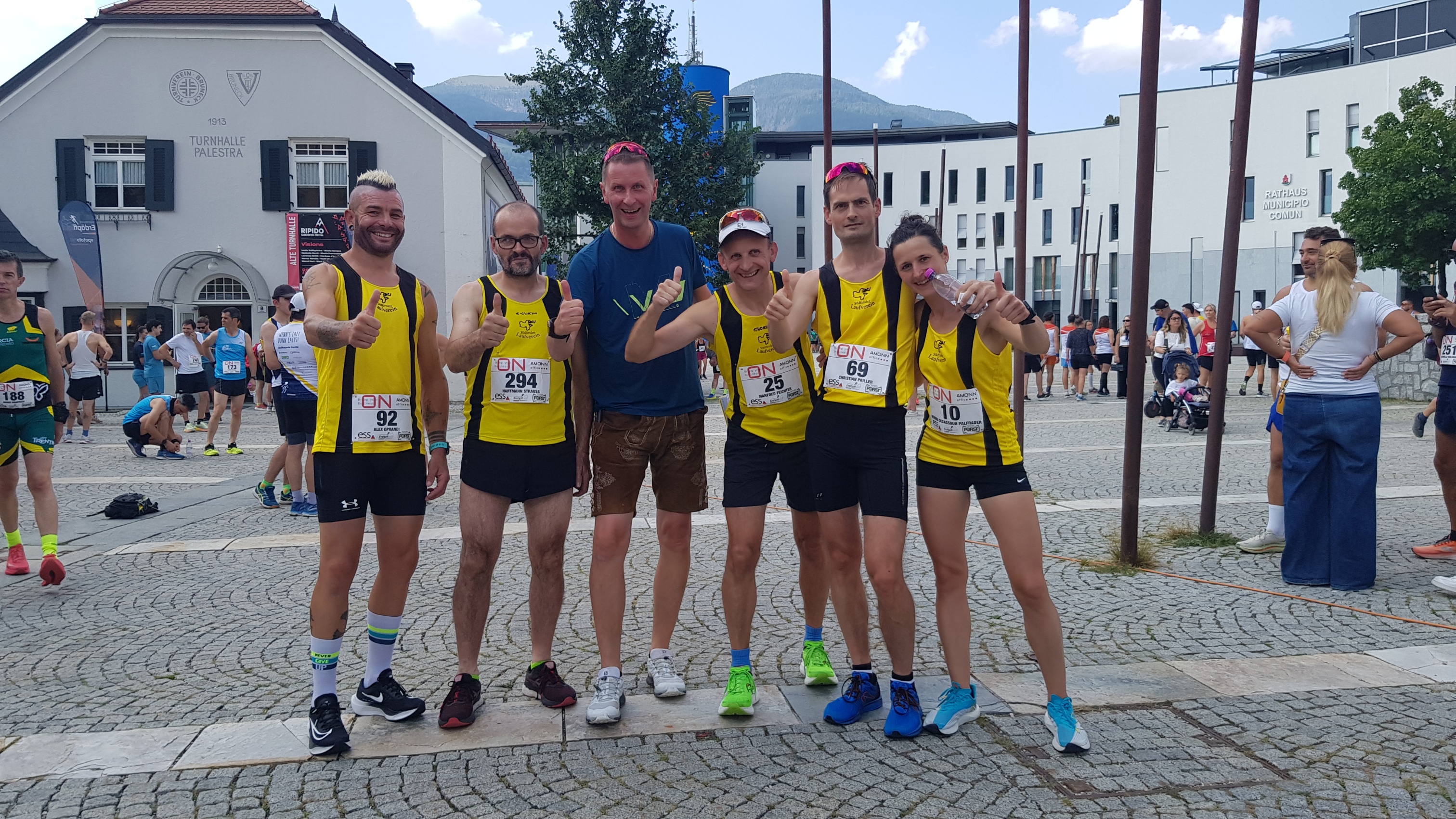 Bei der diesjährigen Auflage des inzwischen sehr bekannten Trient Halbmarathon, nahmen am 6. Oktober auch 4 SLV-ler am Hauptlauf, dem Halbmarathon teil. Schnellster der 4 Vereinsmitglieder wurde Johann Ebner vor Burkard Zozin, Stefan Oswald (sein 1. Rennen nach einem Jahr Verletzungspause) und Albert Colz. Das hohe Niveau des Rennens zeigte sich in der Siegerzeit von 1:00:14 Stunden. Anbei die Platzierungen und Bruttozeiten der SLV-ler’innen: insges. 188. Rang (176. Mann + 22. SM45: Johann Ebner (1:32:58) (Nettozeit: 1:32:48) insges. 325. Rang (302. Mann + 5. SM65): Burkard Zozin (1:39:07)(Nettozeit: 1:38:55) insges. 448. Rang (405. Mann+ 15. SM60): Stefan Oswald (1:44:41)(Nettozeit: 1:44:29) insges. 590. Rang (522. Mann + 5. SM70): Albert Colz (1:52:11)(Nettozeit: 1:51:54)
