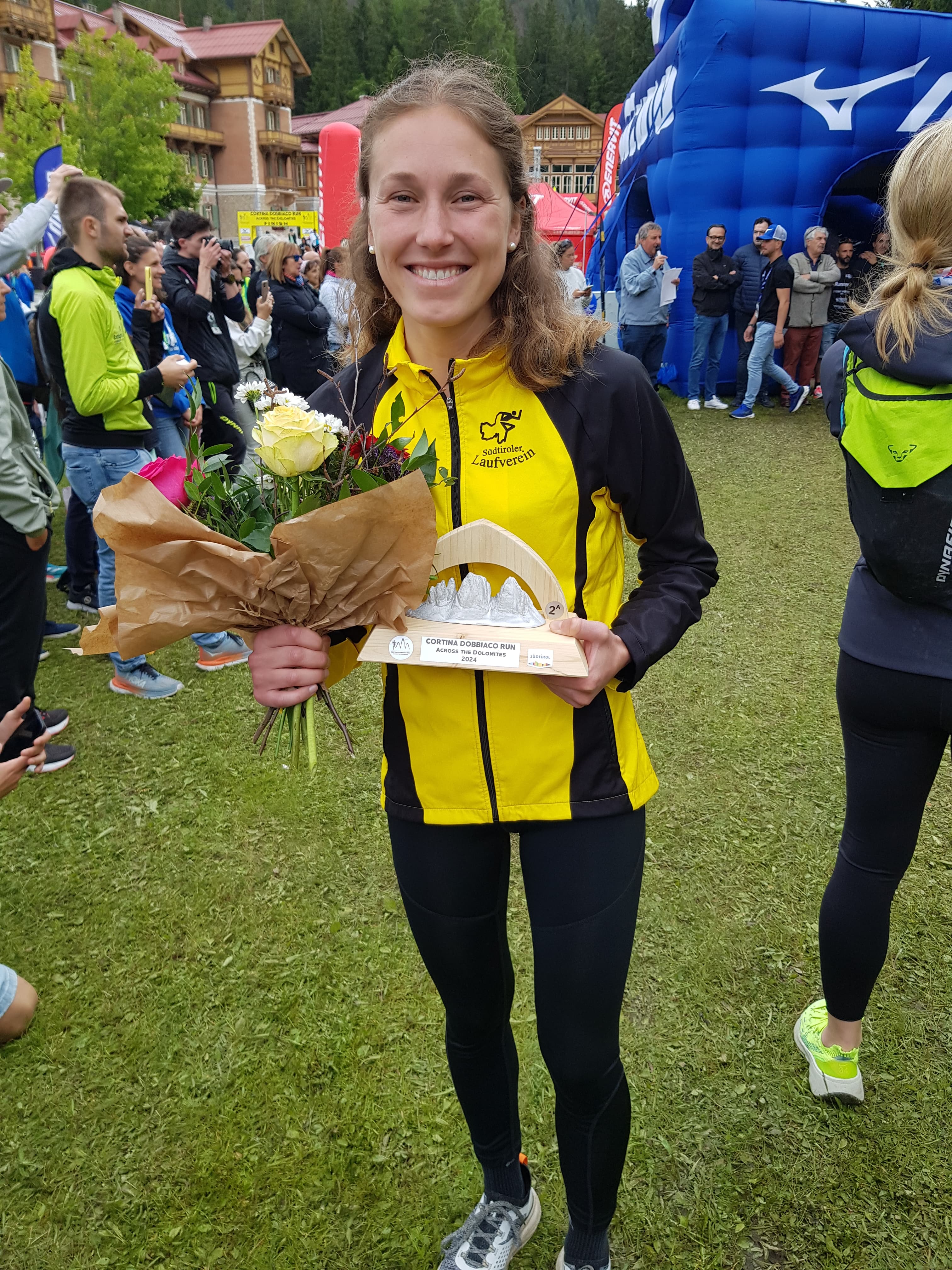 Unsere Trailqueen Angelika Eckl nahm trotz einer bereits absolvierten Trainingseinheit am gleichen Tag, am Samstag, den 8. Juni am Berglauf mit 7,5 km und 700 Höhenmetern teil und belegte mit einer Zeit von 55.18 Minuten den sehr guten 4. Platz im Frauenfeld, wobei ihr auf den 3. Platz nur 29 Sekunden und auf den 2. Platz auch nur weniger als 1 Minute fehlte. Souveräne Siegerin im Frauenfeld wurde Andrea Schweigkofler (SC Meran) in hervorragenden 48.30 Minuten.