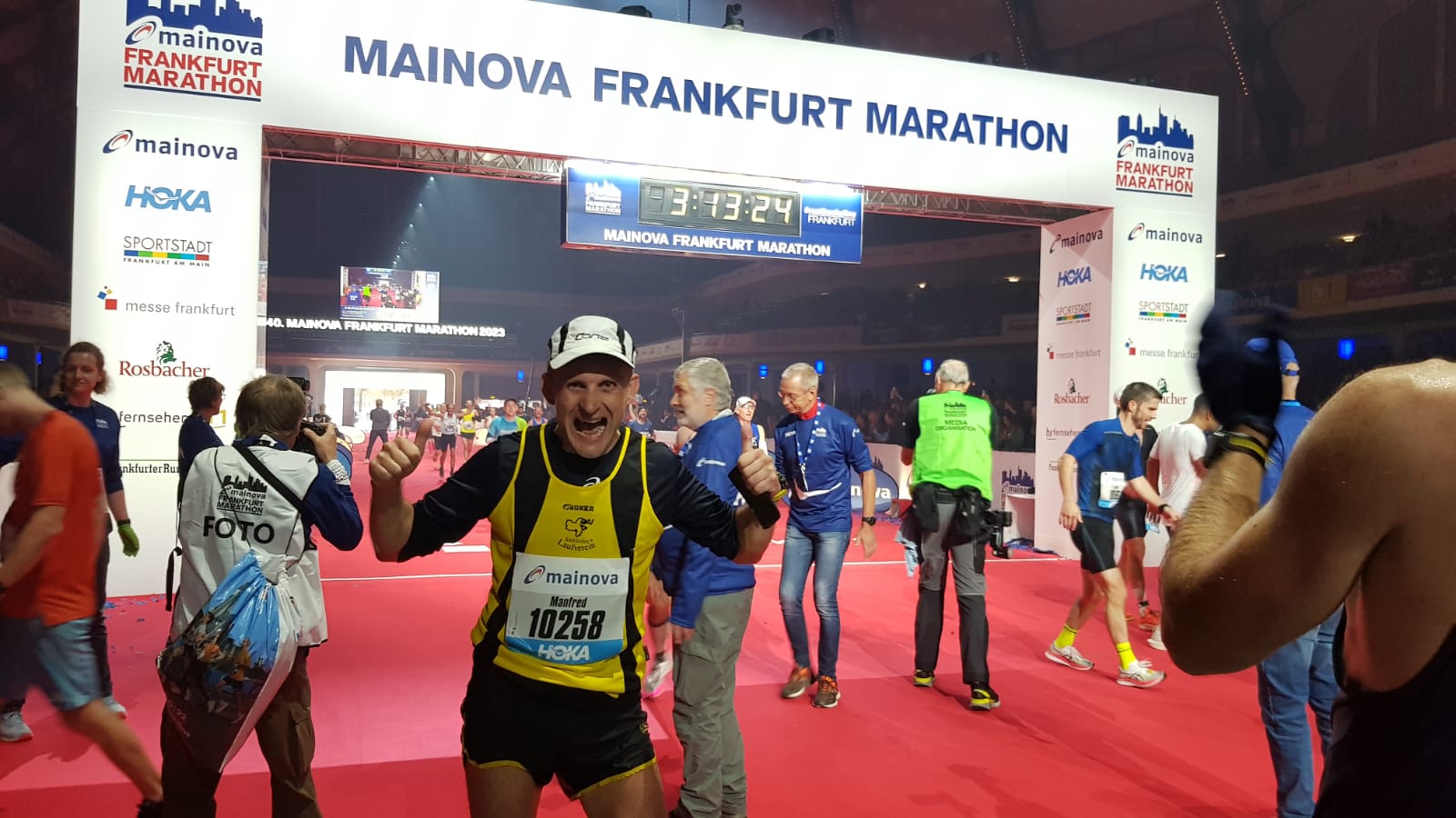 Eine Woche später, am 29. Oktober fand der 40. Frankfurt-Marathon statt, an dem Manni Feichter teilnahm. Bei teils recht schwierigen Bedingungen (Wind, eher frische Temperaturen und teilweise Regen) gelang ihm in 3:07:02 Stunden (1. Hälfte in 1.31.06 + 2. Hälfte in 1.35.56) trotz allem eine sehr gute Zeit, worüber er sich auch entsprechend freute und die investierte Zeit in das Training der letzten 2-3 Monate zum Glück auch belohnt wurde.