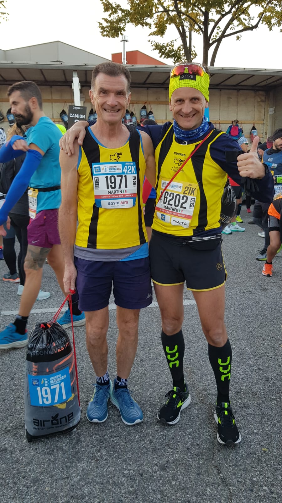 Unser Vielläufer Martin Rossi lief am 19. November, genau an seinem 65. Geburtstag den Verona-Marathon und somit nach dem Medoc-Marathon Anfang September seinen bereits 2. Marathon innerhalb weniger Monate. Bis km 30 lief es sehr gut, danach musste er kämpfen und büßte bis zum Schluss noch einige Minuten an Zeit ein. Er konnte nach hartem Kampf auf den letzten Kilometern trotz allem seine Bestzeit vom Amsterdam-Marathon im Oktober 2022 um ca. 45 Sekunden auf 3:27:47 Stunden (Nettozeit) verbessern. Martin benötigte 1:40:27 Stunden für die 1. Hälfte und 1:47:20 Stunden für die 2. Hälfte, belegte dabei den 635. Gesamtrang (587. Mann), holte den 6. Rang in der Kat. M65 und konnte sich somit über sein selbstgemachtes Geburtstagsgeschenk richtig freuen.