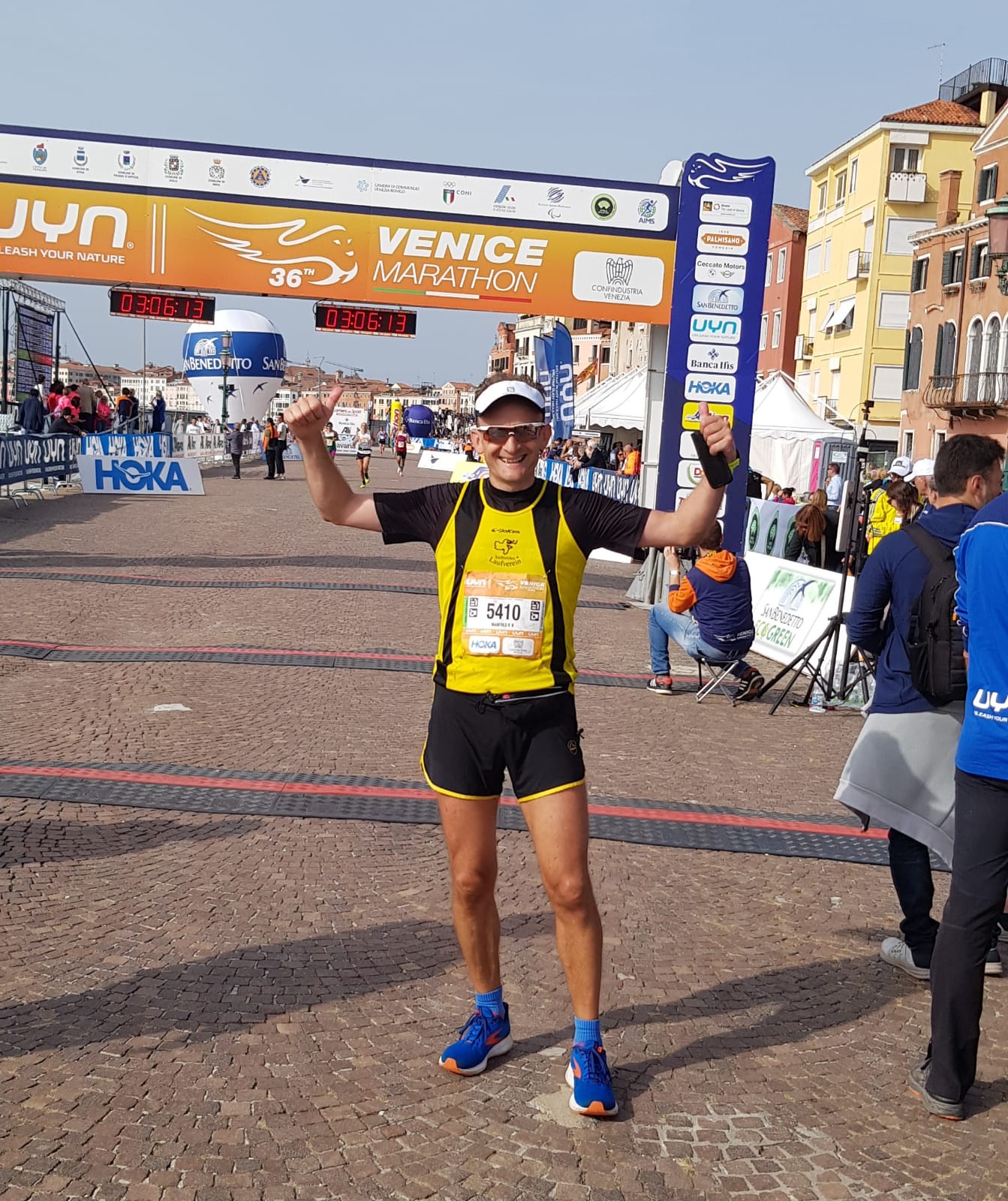 So wie im letzten Jahr lief Manni Feichter auch heuer beim inzw. 36. Venedig-Marathon am 23. Oktober mit. Bei seiner 4. Teilnahme an diesem Marathon konnte er sich gegenüber dem letzten Jahr um 6 Minuten verbessern und überquerte nach großem Kampf auf den letzten Kilometern in 3:03:49 Stunden (1. Hälfte in 1:30:01, 2. Hälfte in 1:33:48) als 141. (132. Mann und 6. in M50) nach dem Überwinden von 14 „Brücken“ im Stadtgebiet von Venedig, erschöpft aber sehr zufrieden die Ziellinie.